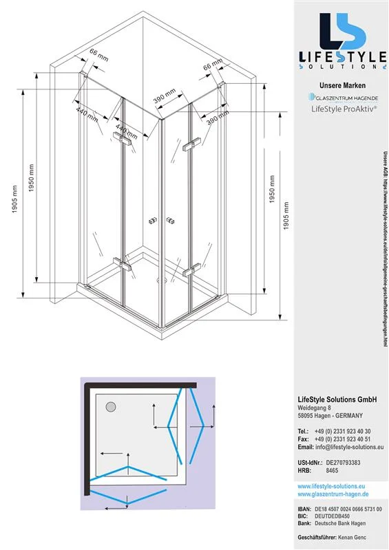 19) Glaszentrum Hagen - 100x90x195cm - Hera Duschkabine Dusche Duschabtrennung - 8mm - ESG Glas
