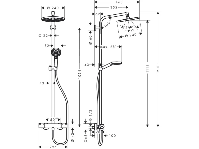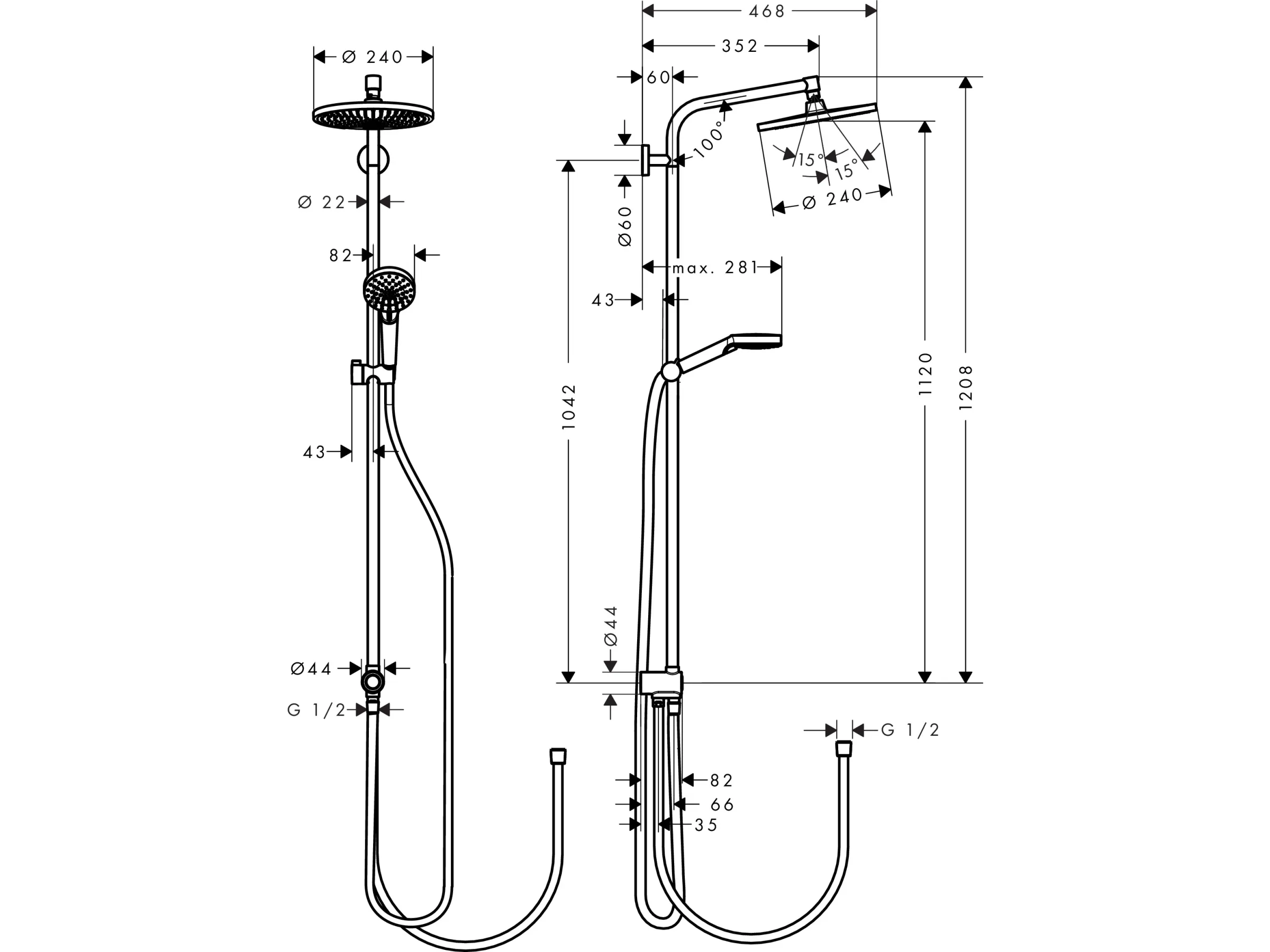 Flexible Kopfbrause und Handbrause mit 2 StrahlartenDie große XXL-Kopfbrause sorgt mit einer Strahlfläche von 240 mm und einem erfrischenden Brausestrahl für eine angenehme Regendusche. Über das Thermostat wechseln Sie ganz bequem