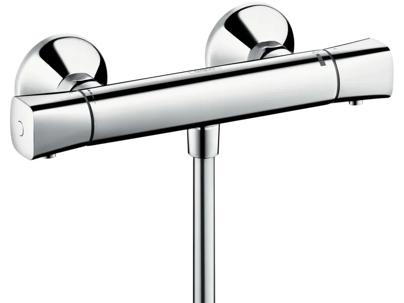 Das Hansgrohe Ecostat Universal Aufputz Brausethermostat besticht durch schlichtes Design und präzise Funktionen. Wasserzufuhr und Temperatur werden über die Dreh-Griffe gesteuert.