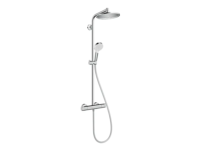 7) Hansgrohe Duschsystem Crometta S Showerpipe 240 Chrom/Weiß mit Thermostat