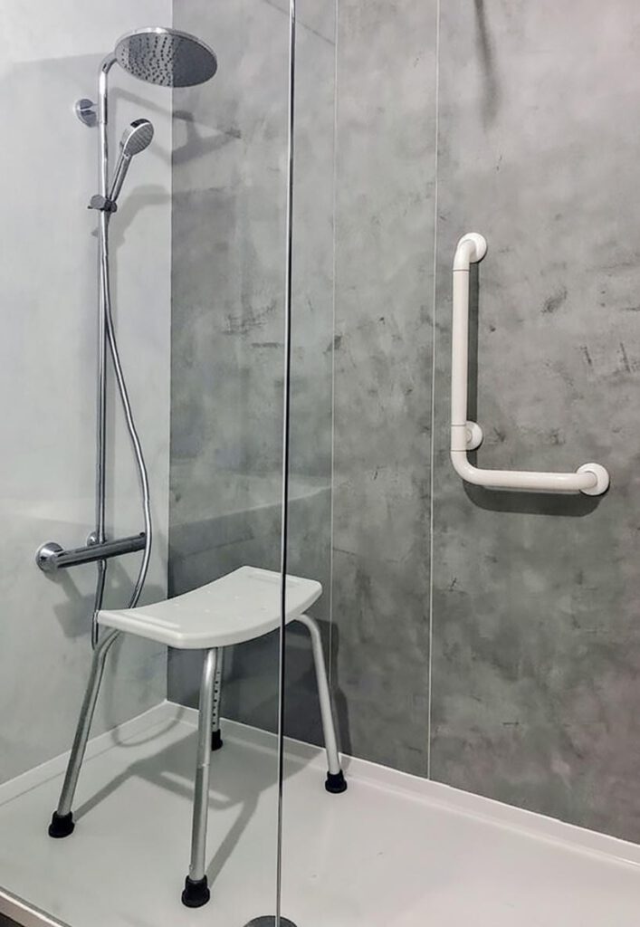 Halte- und Stützsysteme in der Dusche, vorzugsweise höhenverstellbar, optional mit der Möglichkeit zum Einhängen oder Nachrüsten eines Duschsitzes