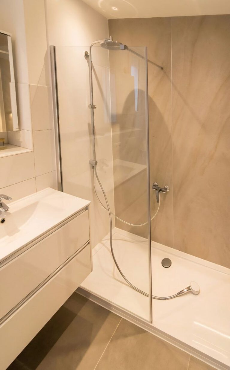 Reduzierung auf das Wesentliche: großzügige Dusche statt Kombination aus Badewanne und Dusche